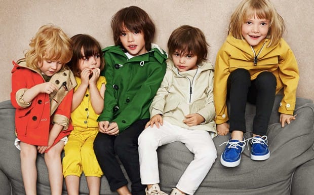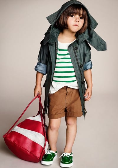 Barberi kolekcija za decu za proleće – leto 2014. obiluje živim bojama,a od dezena dominiraju tufnice i pruge. Kolekcija naravno nije mogla da prođe i bez legendarnog klasičnog Barberi trenč mantila.