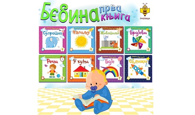 Bebina prva knjiga je edicija od osam tematskih knjiga koje su u potpunosti svojim dizajnom, oblikom i ilustracijama prilagođene bebama i njihovoj bezbednoj upotrebi. Teme knjiga su pažljivo birane i u skladu su sa kognitivnim i emocionalnim razvojem beba usmeravajući njihovu pažnju ka pojmovima iz neposrednog okruženja.