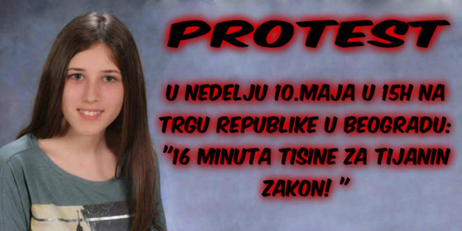 Na beogradskom Trgu republike u nedelju 10. maja u 15 sati biće održan protest zbog neusvajanja takozvanog „Tijaninog zakona“. Tačno u to vreme okupljeni će, kako je najavljeno, „gromoglasnom tišinom“ u trajanju od 16 minuta protestovati zato što ovaj pravni akt još nije usvojen.