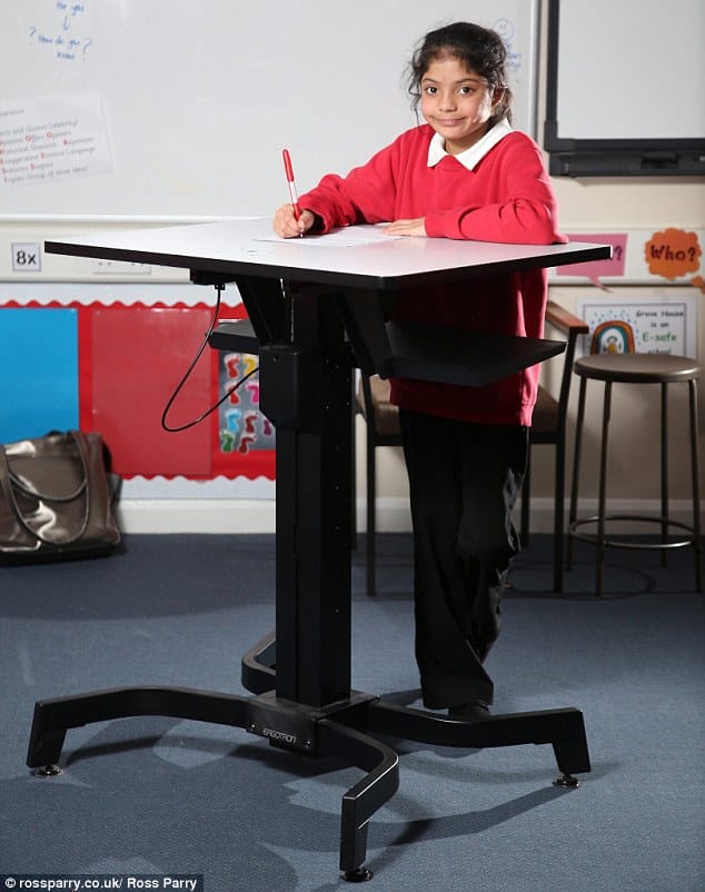 U svetlu novih naučnih saznanja, kako bi smanjila štetne posledice stajanja po dečije zdravlje, osnovna škola u engleskom gradu Bredfordu uvela je pisaće stolove za stajanje za decu od devet i deset godina, u okviru pilot projekta koji želi da ispita da li stajaći stolovi mogu da poboljšaju koncetntraciju i zdravlje kod učenika.