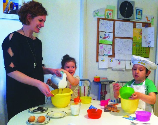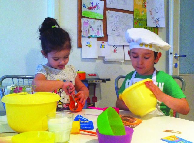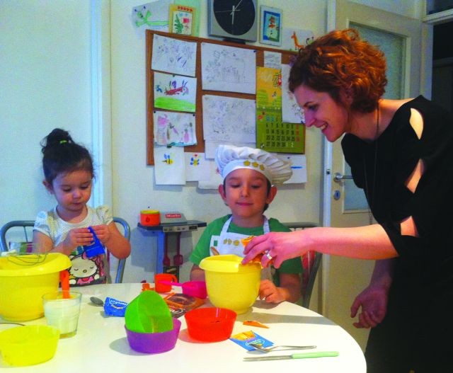 1 – Penasto umutiti puter, šećer i vanilin šećer, a onda dodavati jedno po jedno jaje i istopljenu čokoladu. Smesi postepeno dodavati mleko, uz konstantno mućenje. Deca mute, mame dosipaju.