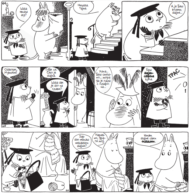 U godini na razmeđi dva velika jubileja – 100 godina od rođenja Tuve Janson i 70 godina od objavljivanja prve knjige o Muminu, Komiko, u okviru edicije „Meridijani“, objavljuje svoju prvu kolekciju stripova o verovatno najpoznatijem liku skandinavske fikcije.