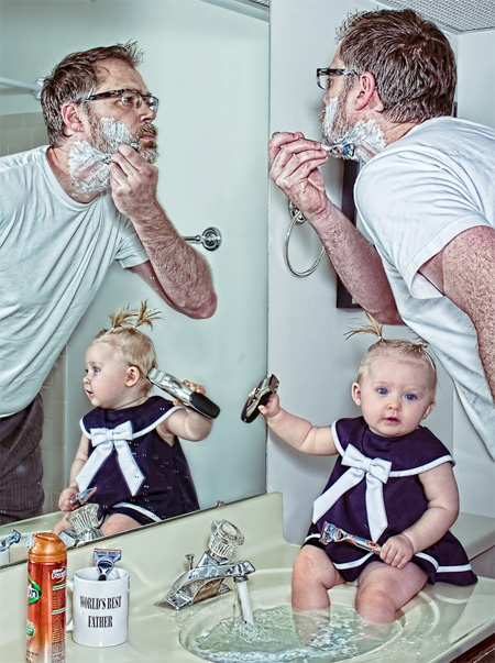 Ciklus fotografija"Najbolji tata na svetu" stalno dopunjuje novim uvrnutim fotografijama, koje, osim humora, obeležava i Dejvova "najbolji tata" šolja za kafu.