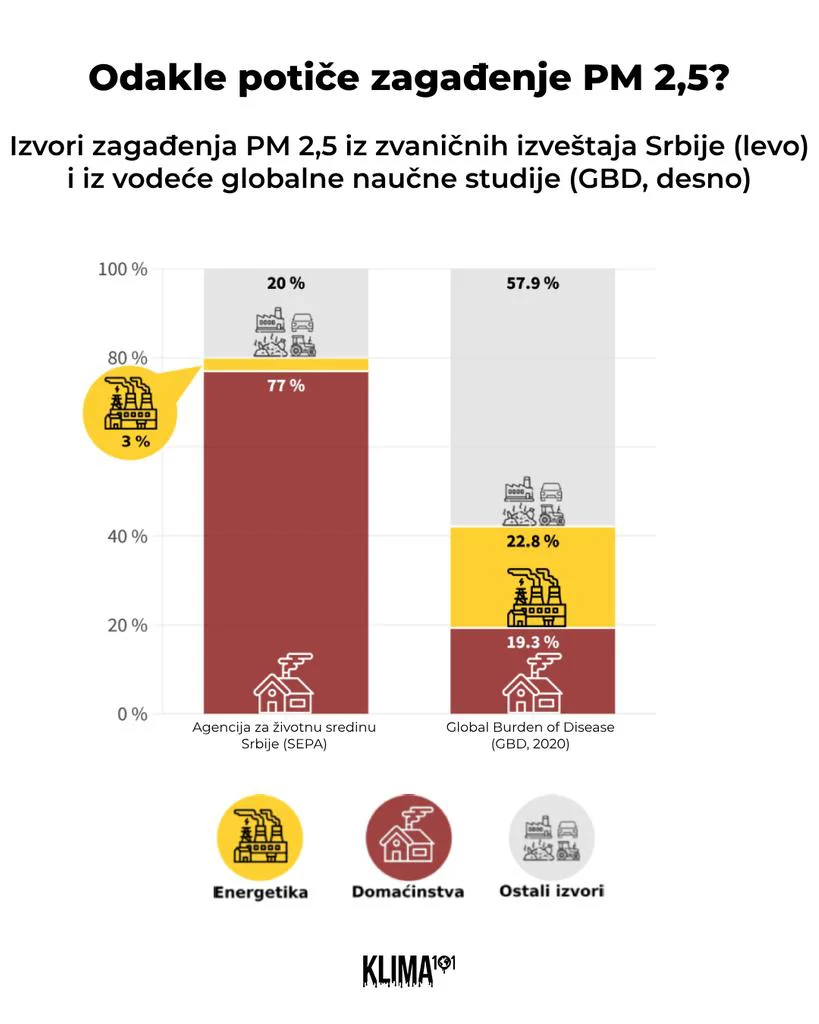 Izveštaji o kvalitetu vazduha koje izdaje SEPA zapravo su jedini publikovan izvor podataka koji dolazi do zaključka da su u Srbiji dominantni izvor čestičnog zagađenja (PM2,5) individualna ložišta, a ne termoelektrane na ugalj.
