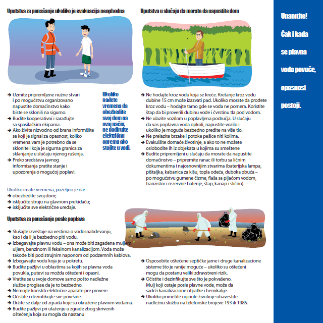 Kako se ponašati u slučaju poplave, zaštititi svoju porodicu i pomoću drugima u nevolji? Prenosimo vam delove „Porodičnog priručnika o ponašanju u vanrednim situacijama“ koji je osmislio i objavio Sektor za vanredne situacije Ministarstva unutrašnjih poslova Republike Srbije u saradnji sa Odeljenjem za demokratizaciju Misije OEBS u Srbiji.