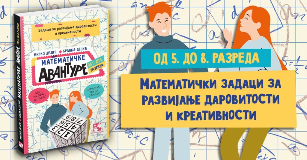 Posle niza knjiga iz oblasti zanimljive matematike namenjenih predškolcima, deci u nižim razredima osnovne škole i srednjoškolcima, autori Mirko Dejić i Branka Dejić pripremili su novu zbirku za osnovce Matematičke avanture – od 5. do 8. razreda. Zadaci za razvijanje darovitosti i kreativnosti, u izdanju Kreativnog centra.