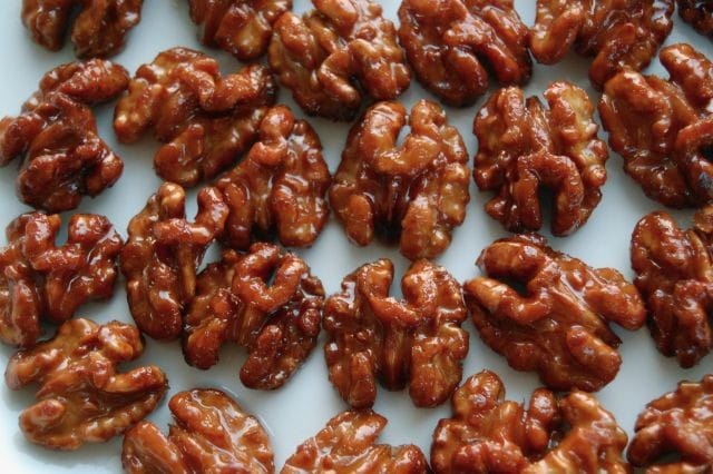 Pomešajte jednake količine meda i maslinovog ulja, i začinite solju i biberom (kajen biber, ukoliko želite pikantnije) po ukusu. Prelijte preko nesoljenih orašastih plodova (orah, indijski orah, badem), promešajte, kako bi se svi lepo uvaljali, a zatim ih ispecite u rerni na 2000C/1800C ukoliko imate turbo rernu/6 gas. Zalogajčiće pecite 10-15 minuta, s tim što ih na pola pečenja treba okrenuti kako bi se ravnomerno ispekli. Servirajte ohlađeno.