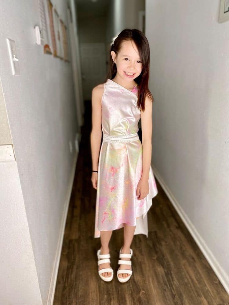 Iako je Kaja napravila mnogo modela, omiljena joj je bledo roze svetlucava haljina koju je oslikala ručno.