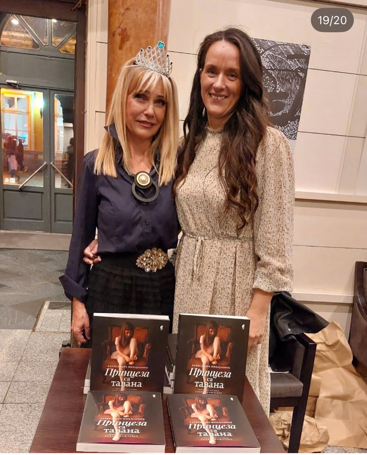 Zbunila sam se. Malo sam čak bila i zakasnila, pa sam tiho ušla u Dom kulture Pančevo, zatečena brojnošću publike (Ovo kao Sava centar, pomislih!). I nisam sve ovo rekla. A bila sam dužna to da kažem kada su me iznenada na scenu pozvali da se kao urednik pomenutog izdanja „Princeza sa tavana“, objavljenog u Službenom glasniku malo pre ovogodišnjeg Sajma knjiga, poklonim pre svega ovoj deci, a potom i svima redom. Na čelu tog reda stoji učiteljica Jelena Vukadinović. Ona je na svoju ruku, sa mnogo razloga očarana Aleksandrinim delom o srednjovekovnim srpskim vladarkama i važnim ženama sa dvora Nemanjića, Lazarevića i Brankovića, odlučila da sačini mini-predstavu. Mini-predstava obuhvatila je 45-oro dece koja su scenom vladala kao da već imaju ozbiljan pozorišni opus.