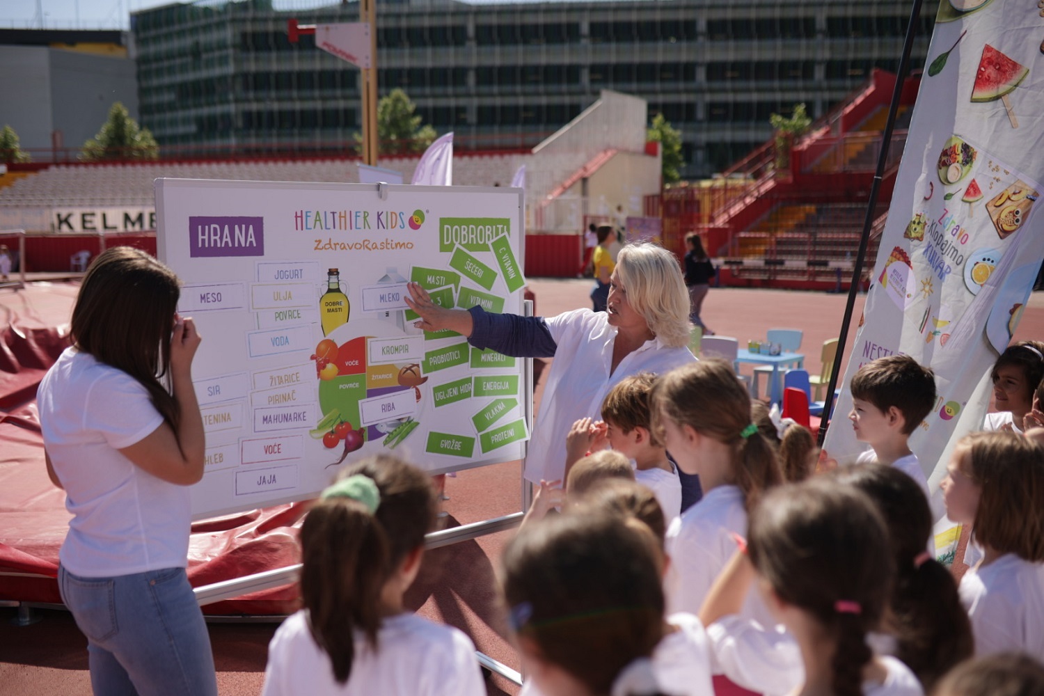 Nakon atletskih disciplina, na ZdravoRastimo stanici učenici su se uz pomoć zabavno-edukativnih sadržaja upoznali sa principima uravnotežene ishrane. Učeći o najboljim načinima da se različite namirnice kombinuju, te o njihovim hranljivim dobrobitima, kroz različite igre osnovci su stekli znanja o planiranju zdravih obroka koja će im značiti kroz ceo život.
