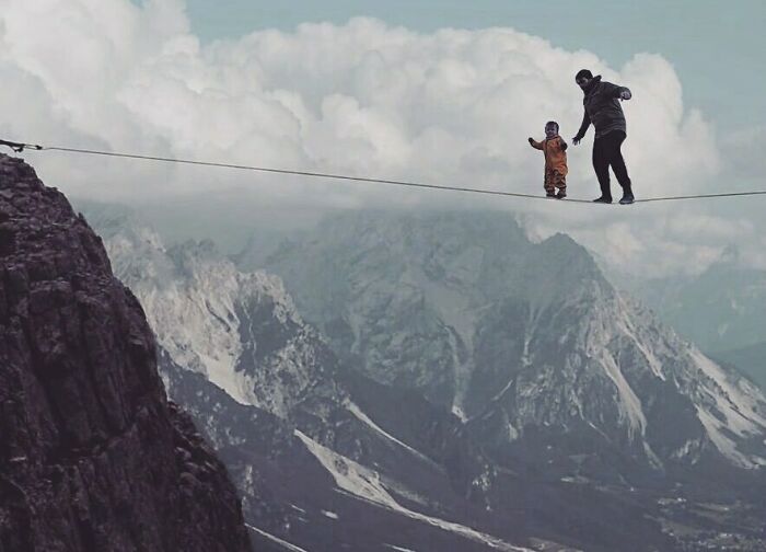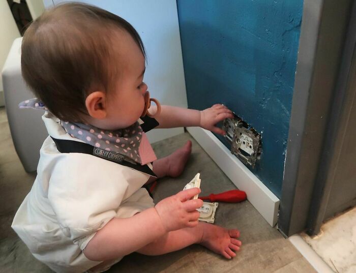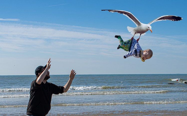 Svaki put kada bi bio ostavljen da sam čuva svoje dete, njegova žena bi mu slala poruku: Je l’ beba dobro? Njemu se vremenom smučilo da joj odgovara da je sve u redu, pa je odlučio da se malo našali. On je, naime, napravio foto-montaže svoje ćerkice koje je prikazuju u naizgled opasnim situacijama. Beba, na primer, na jednoj slici bezbrižno sedi na litici, dok se na drugoj spušta skejtom niz gelender.
